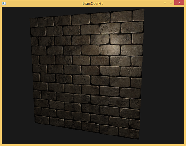 通过慢慢随着时间慢慢移动光源,你就能明白法线贴图是什么意思了。运行这个例子你就能得到本教程开始的那个效果: