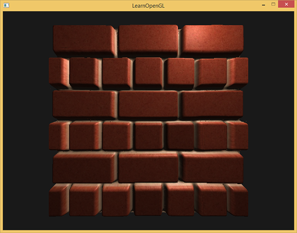 这里你会看到只用法线贴图和与视差贴图相结合的法线贴图的不同之处。因为视差贴图尝试模拟深度,它实际上能够根据你观察它们的方向使砖块叠加到其他砖块上。