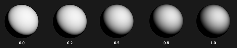我们可以看到,较高的粗糙度值显示出来的镜面反射的轮廓要更大一些。与之相反地,较小的粗糙值显示出的镜面反射轮廓则更小更锐利。