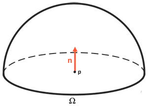 基于反射率公式是围绕所有入射辐射率的总和,也就是辐照度来计算的,所以我们需要计算的就不只是是单一的一个方向上的入射光,而是一个以点为球心的半球领域内所有方向上的入射光。一个